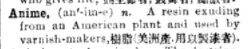 1908年《英华大辞典》中对anime一词的解释