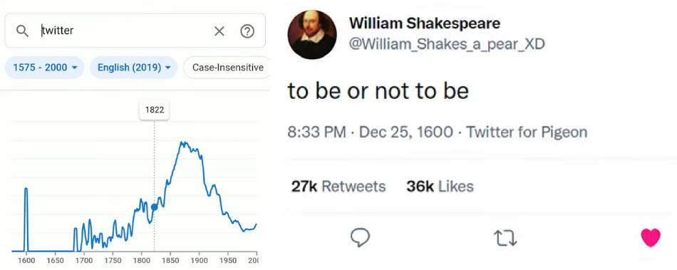 虽然我们使用统计器的方法有时不太科学,但谷歌的工具也绝非完美无瑕。事实上,早在谷歌图书词频统计器诞生伊始的2010年,就已经有学者吐槽过某些21世纪特有名词在语料库中的“穿越”现象。