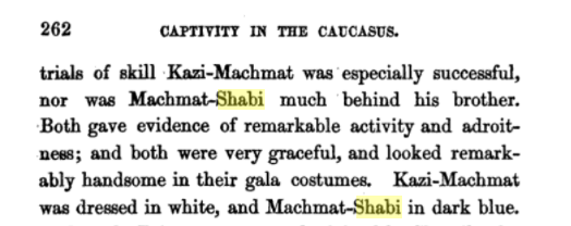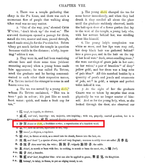 Shabi一词在19世纪出现几率很高,是因为英国的殖民统治达到鼎盛,进而与东方文明产生了空前的交流。Shabi常出现在与中国、印度、阿拉伯文化相关的英文著作中,指代的意思各不相同,放到中国是“沙弼”,即沙弥、小和尚一词的音译;放到阿拉伯语里就变成了惯用的人名。