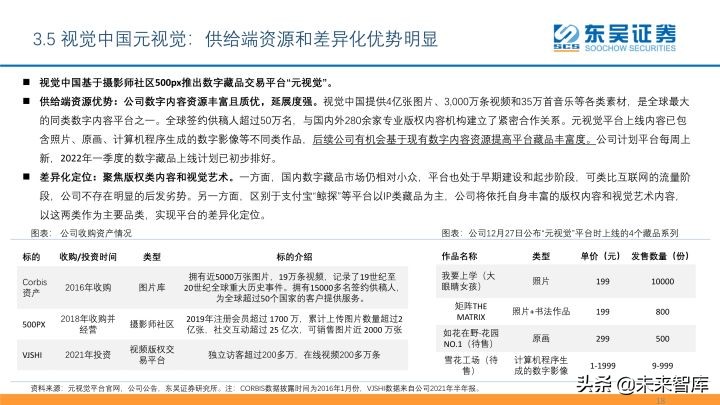 成都文交所:国内首家数字文化产权交易平台,有丰富文化资源支撑。股东博瑞传播背靠成都传媒集团和国家图书馆,成都文交所有望依托其文化资 源,联合头部企业,结合区块链确权和智能合约等产业组合,推动构建覆盖全国的文化数字交易生态系统。