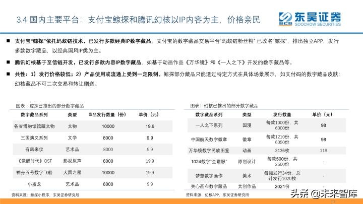 为防范金融风险,国家对文交所的交易限制主要包括交易方式(不得拆分发行和集中交易等)、投资者交易间隔和权益持有者数量等。未来数字藏品交易平台的监管可能 会围绕这几方面展开。