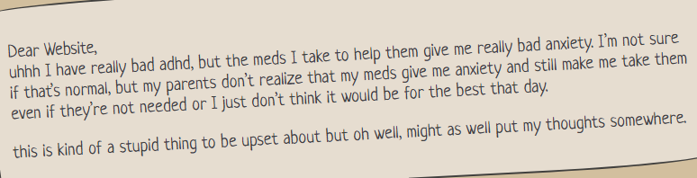 除了疫情,无数人也在这里倾吐自己生活中难以启齿的故事,例如有人深陷多动症治疗药物副作用带来的焦虑中,尽管这种焦虑让他非常难受,但他只能选择自己默默承受。