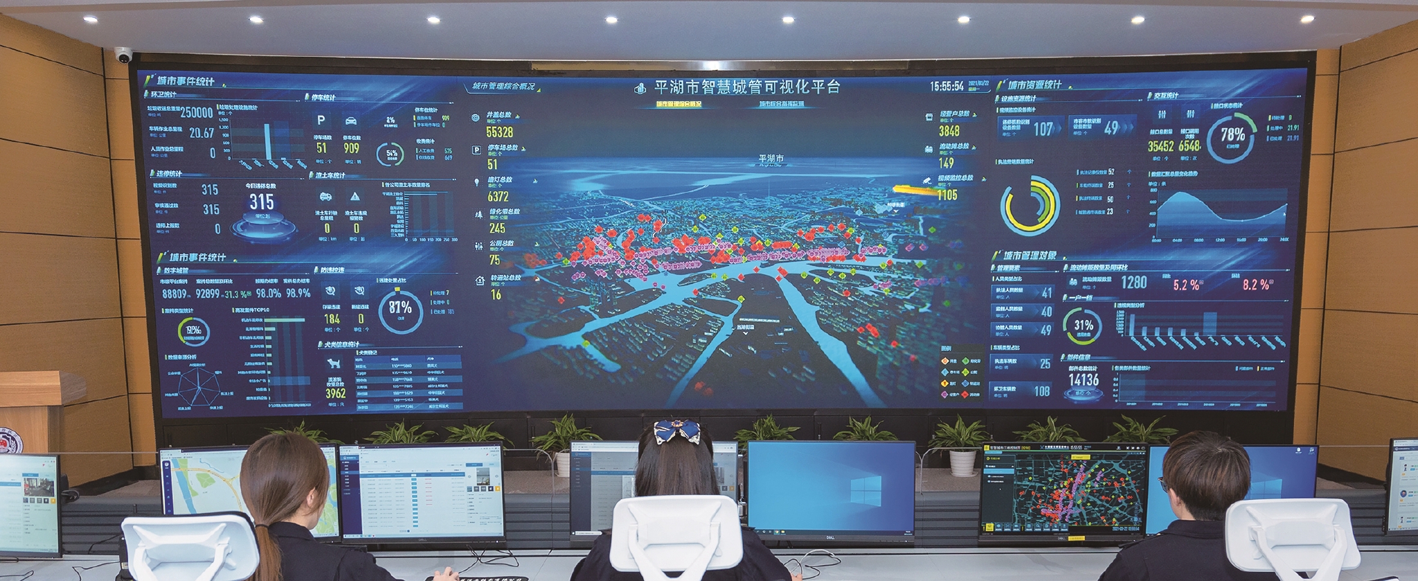 这“一张网”的出现,能够让数据说话。通过建立平湖市沿街商户数据库及流动摊贩、街面小微违法行为人脸数据库,在核心道路共享治安监控250路,社会面监控200路,搭建覆盖城区30平方千米、全市8个镇(街道)21个小城镇的跨区域智慧管理网络,形成深度交融、万物互联的“混合世界”。通过AI智能识别15类城市管理问题,实时掌控城市动态并以全天候智能预警、自动提醒、自动二次识别、自动派遣和结案,实现城市治理全过程自动化、全记录管理。自2020年开启智慧化管理以来,巡逻队员由原来的每个路段4~5名减少到2名,年案件处理量18万余件,解决率达99%。一网通感成为数字孪生城市精准映射虚实互动的核心。