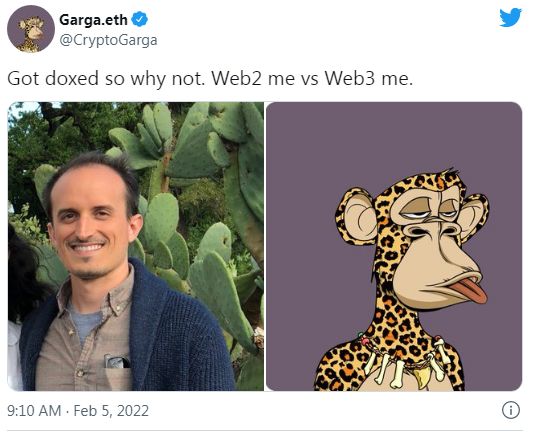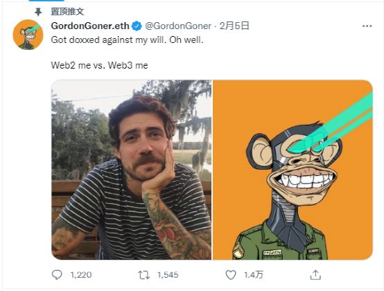 消息曝出后,两位创始人也随即在社交平台发布动态承认了身份。他们均表示被“人肉”搜索了,并以“Web2 me vs Web3 me”(Web2 的我对比Web3 的我)的格式,发布了现实中的照片以及无聊猿NFT形象。