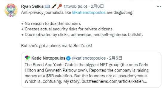 加密分析机构Messari创始人Ryan Selkis 也对该媒体的报道表达了反对态度,他表示没有任何理由可以“人肉”创始人,同时这一行为也给公众带来了安全风险。
