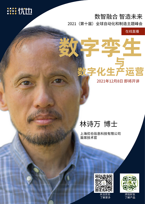 2021年12月8日,优也首席技术官林诗万博士发表了题为“数字孪生在数字化生产运营中的一些思考和观察”的演讲,重点从生产运营场景落地的角度,对如何把数字孪生这一个概念和相应技术利用起来,用于解决数字化生产运营管理的问题,进行一些探讨。