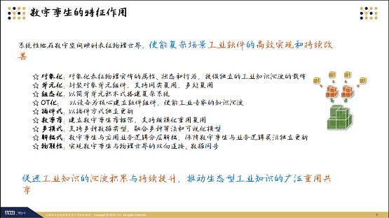 在这一页中,我列举了不少数字孪生的特征作用供大家参考,其中的一些在前面我们都有不同程度的讨论。在这里我想强调一下所谓的OT化和解耦式这两点。