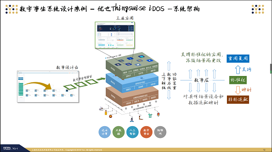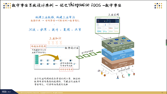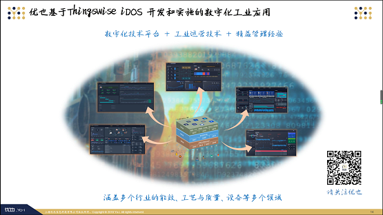 今天到此我讲的几乎都是概念和思路。但是,我们自己也是据此而实践和推进的。在现在剩下的一些时间我简单以优也的数字化技术平台,一个基于数字孪生和工业互联网平台技术的工业数据操作系统(Thingswise iDOS),作为例子,讲解一下实现上面所谈到的数字孪生设计理念的一个真实的系统。