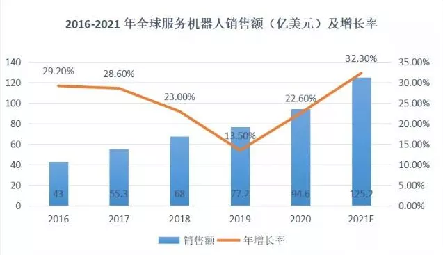 根据IFR(国际机器人联合会)数据,预计2021年全球服务机器人市场规模约为125.2亿美元,2022年市场规模将超过工业机器人,2023年全球服务机器人将突破200亿美元。