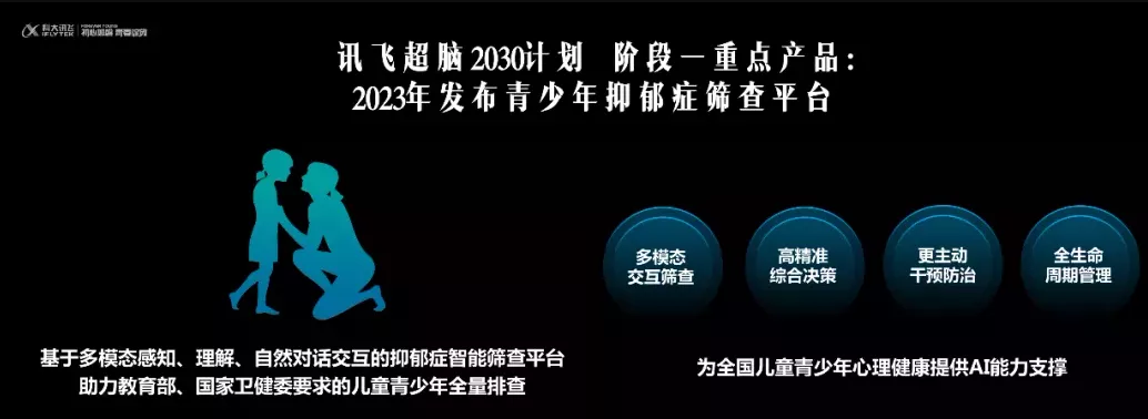 据了解,“讯飞超脑2030计划”中的青少年抑郁症筛查平台,基于多模态感知,理解自然对话交互,用AI技术为儿童青少年的心理健康提供支持,这对人类的未来意义深远!