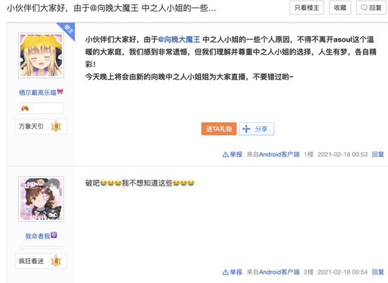 然而,即便不去追究中之人的现实生活已经成为V圈的政治正确,当“中之人”发生意外状况时,粉丝的反应与饭圈塌房如出一辙。A-Soul的成员向晚就经历了中之人现实身份被发现后更换的风波(甚至被拿来玩梗)。