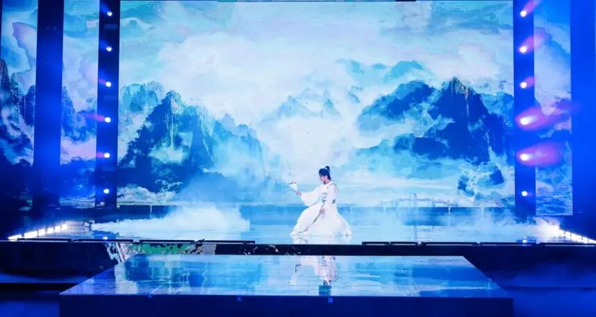 短短五分钟,配合着云雾光影中主舞台、水舞台、水域的交替出现,场景由方寸的山间转变为龙宫的海底。两人也终于跨越“山海”相见,随即由独舞变为精彩的双人共舞,直观展现了一场穿越时空的相聚,也象征着此番万千梦幻玩家突破时空限制齐聚长安。