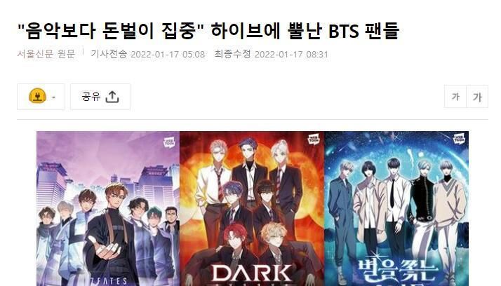 ——“比起音乐,Hybe更在乎赚钱”防弹少年团粉丝怒了