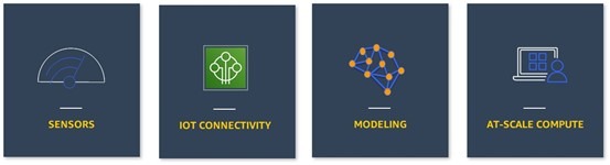 L3级别的典型用例包括运营规划与预测性维护(资产绩效管理)、以及群组管理等。例如,L3中的混合模型可以预测健康状态(虚拟传感器)等量化指标,并预测按当前方式持续运行时的剩余使用寿命(RUL)。模型提供的预测还能够在L1层级中结合上下文情境实现可视化(例如2D仪表板/3D/AR/VR)。这里以农产品市场为例,AWS为我们的客户Descartes Labs提供支持,帮助该实验室使用卫星图像分析北美大陆范围内的农作物健康状况,同时结合价格、供需及其他市场数据生成商品市场预测。利用这些洞见结论,客户将根据这些预测决定最佳对冲或交易策略,将信息转化为价值数百万美元的交易利润。