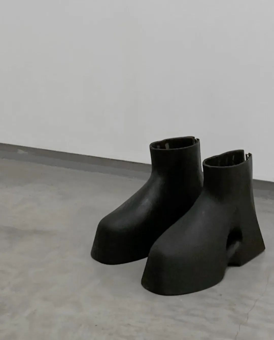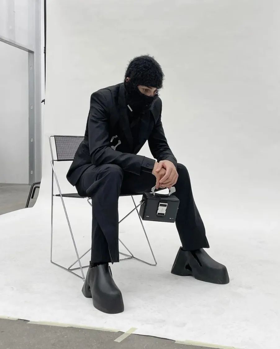 SCRY™️ Lab在与Heliot Emil合作之前,曾为中国设计师上官喆品牌SANKUANZ 2022秋冬打造了一系列以黑白为主、外观同样充满未来科技感的鞋履。