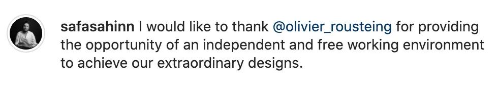 而那双出现在今年秋冬秀场上、有着Safa Sahin设计风格的球鞋,当Safa Sahin第一时间拿到实物后,也在社交平台对Olivier Rousteing给与的自由创作环境表达了感谢。