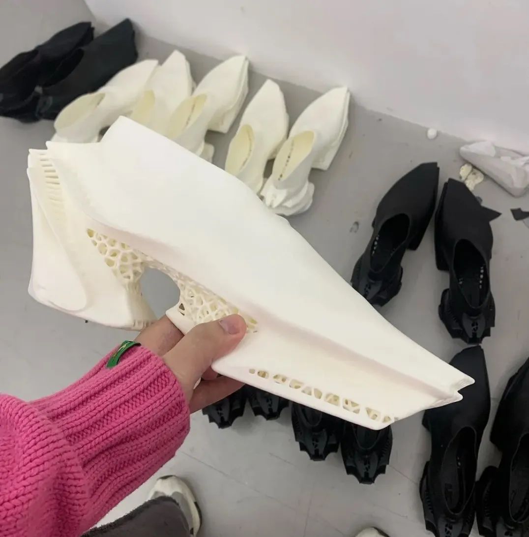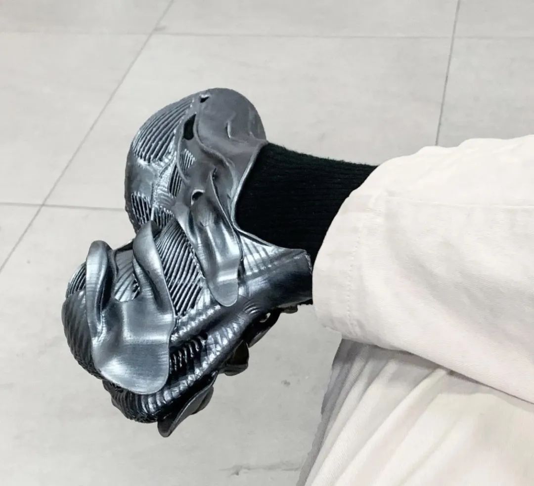 在对未来的想象中,与生态环境适存同样是设计师所要考虑的,Zixiong Wei也认为未来鞋履是可高度定制化、人工智能辅助并且是可回收利用的,而3D打印对可持续性、可回收性材质同样适用,因为对于未来而言,环境保护也是人们必须要考虑到的。