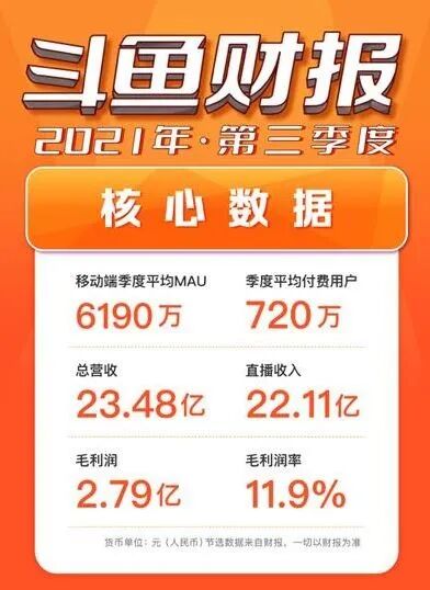 谈论斗鱼的困境似乎为时尚早,目前,斗鱼仍然是国内最具影响力的直播平台之一。斗鱼旗下,仍然有PDD、大司马、周淑怡等众多头部主播,粉丝效应明显。2021年Q1,斗鱼月活用户一度达到1.92亿。2021年Q3,斗鱼移动端月活用户突破6190万,创下历史新高。