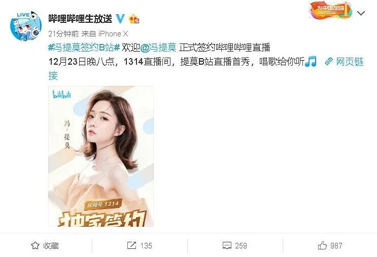 2019年底,前“斗鱼一姐”冯提莫突然宣布,已独家签约哔哩哔哩直播,震惊了直播界。