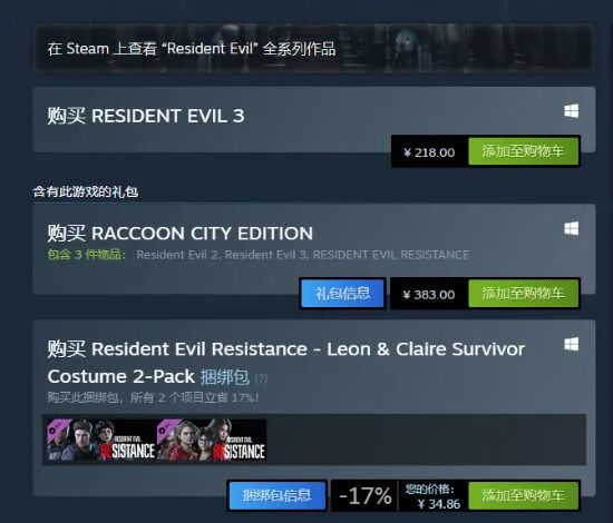 昨日卡普空官方发布情人节贺图的同时,宣布《生化危机3:重制版》 PS4版价格永降 至3990日元(约合人民币220.5元)。而后在Steam商店,多数区域商店价格也迎来大幅永降,国区价格下降近一半,本体价格从414元下调至218元,浣熊市捆绑包从523.5元下调至383元。