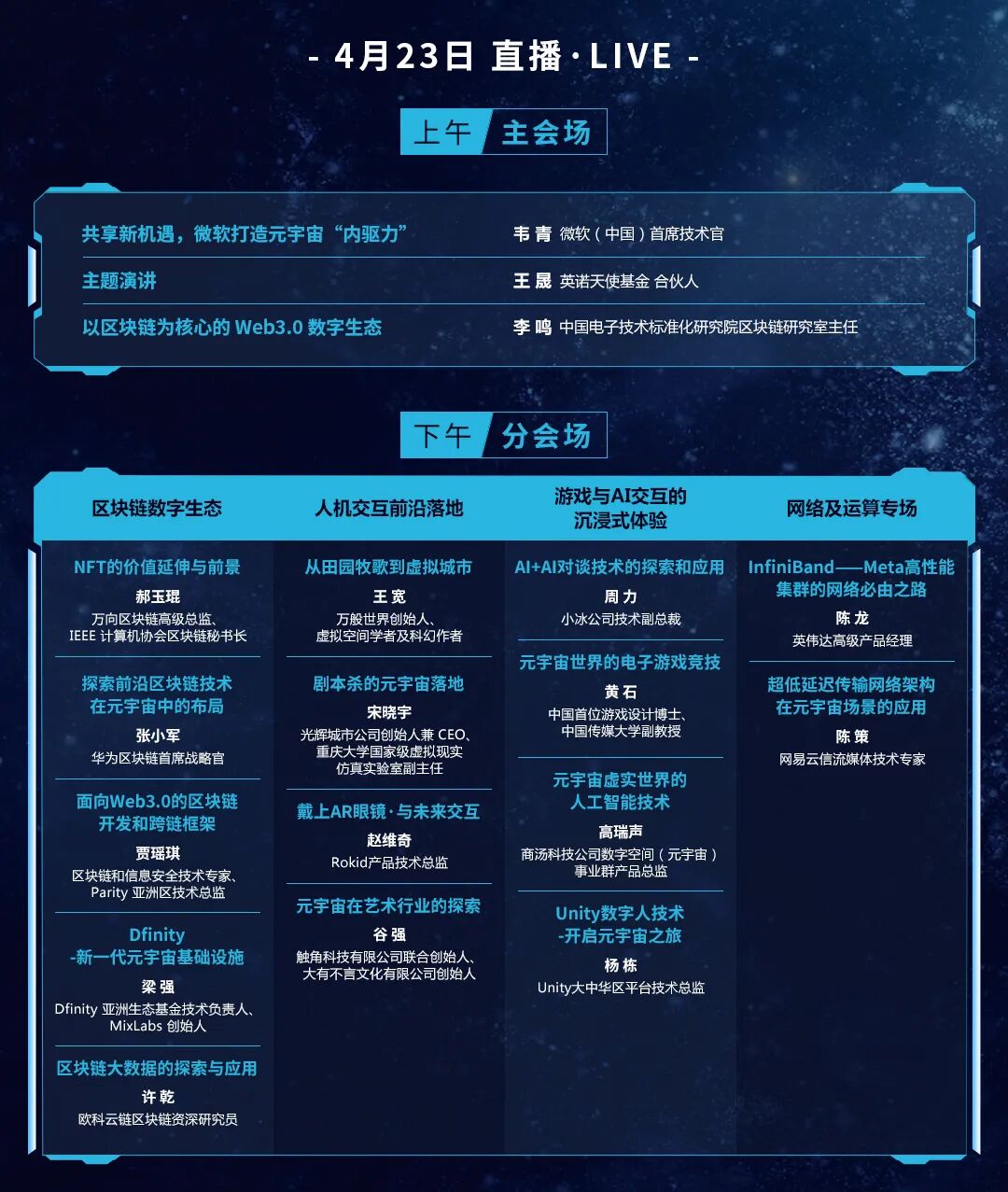 4 月 23 日早 9 点至晚 17 点,大会将通过 MetaCon 元宇宙技术大会 2022 官方网站进行直播,届时直播间内还将抽取多名幸运观众,赠送神秘大奖。具体报名预约流程如下: