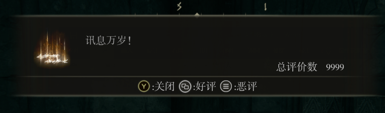实际上,讯息在开荒阶段是个相当不错的辅助工具,既能提前规避前方敌人的埋伏,又能借此收集容易错过的隐藏要素。而写下讯息的玩家在自己的讯息被其他玩家评价时还能回复少量生命值,这对于血量稀缺的开荒时期来说,无疑是来自“宫崎英高的怜悯”。