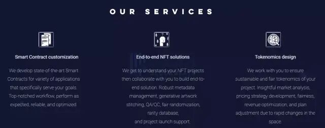 0xStudio 提供的服务包括智能合约定制、端到端 NFT 解决方案、代币经济学设计等,同时它十分重视安全性和透明度,推出的两套智能合约标准「0xStandard」和「Wagyu」已经通过了Inspex的审计,后续孵化的项目都将建立在这些经过审计的智能合约上。