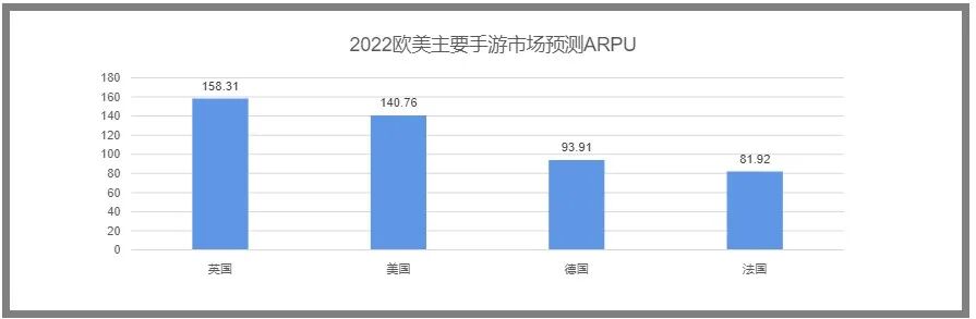 【英国为欧美利润空间最大的市场】 AppGrowing发布2022欧美出海市场洞察报告,报告预估2022年ARPU最高的分别是英国、美国和德国,其中英国利润空间更大,因为买量成本几乎是美国一半。报告中提到欧美玩家玩手游主要动机是解压和消遣,所以广告素材可以关注解压类,另外买量渠道首选YouTube和Facebook。