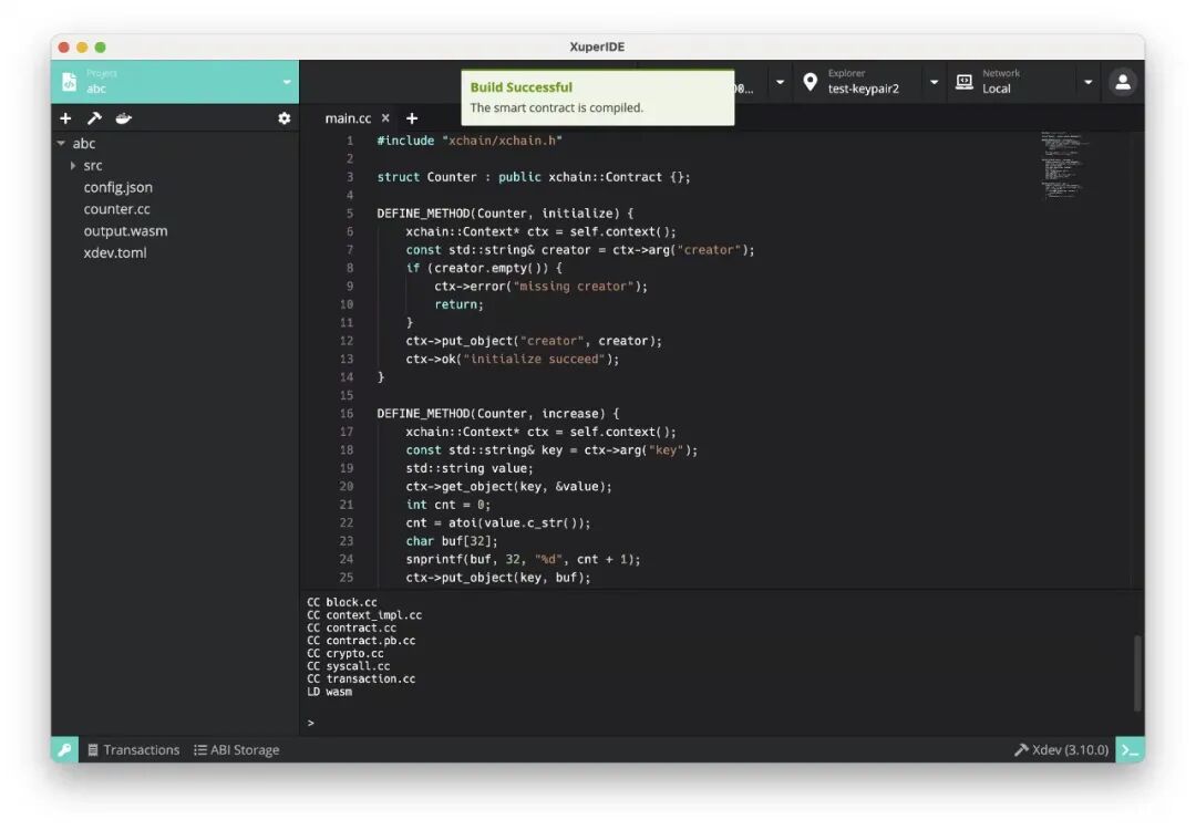 · XuperIDE 内置强大的超级链智能合约编辑器,集成合约模版,并集成编译器、部署工具,可一键完成编译部署操作;