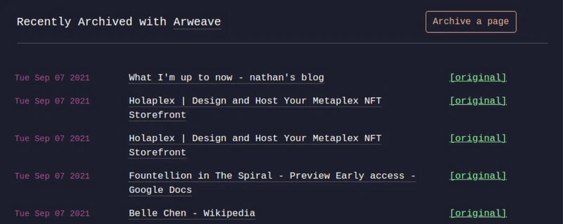 Arweave 最初被设想为一种轻松归档网页的方式,并准确地保存它们在被保存时的状态。这仍然是该协议的一个巨大的使用案例,并帮助拯救了像《Apple Daily》这样的出版物,以免它们变得无法恢复。