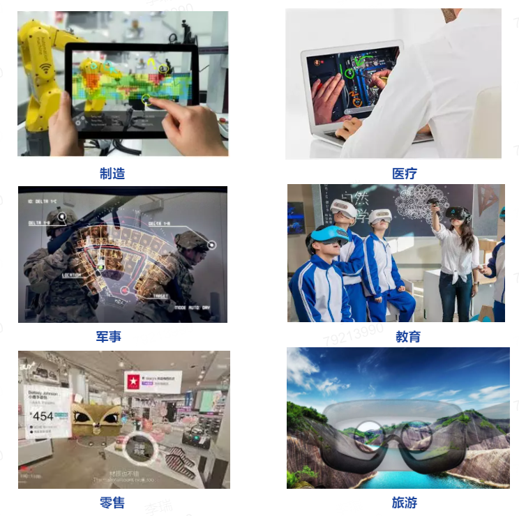 军事:用于战场环境显示、战场作战指挥、装备维修保障、远程医疗救治和军事训练等场景,全面提高前方作战能力、后期保障工作效率以及军事训练水平;
