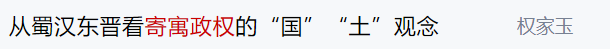 寄寓政权是知名魏晋学者权家玉这几年提出的概念