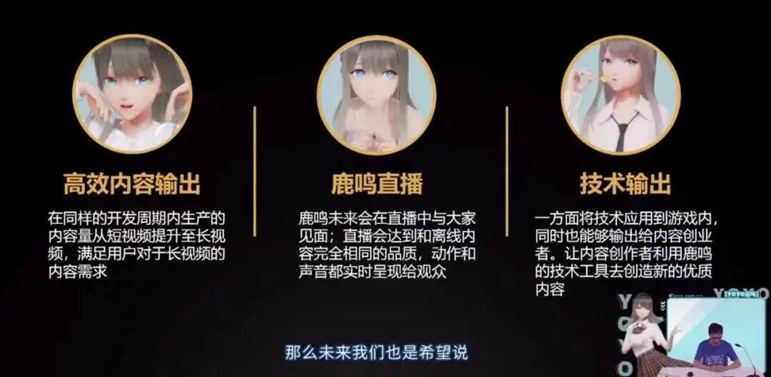 可能米哈游推出鹿鸣也志不在此。在当时的演讲中,刘伟表示,希望鹿鸣的相关技术能够输出给内容创业者们,让更多人能够共同参与创作。