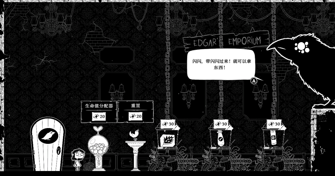 商店的乌鸦老板埃德加看似充满了玄机,它同样是一只同时长着几个眼睛的黑暗怪物,却拥有其它怪物所没有的智慧――然而,游戏的一周目里压根没有几次跟它有关的对话。