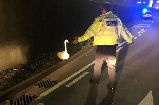在当地街道关闭数小时后,这只天鹅才被成功转移。