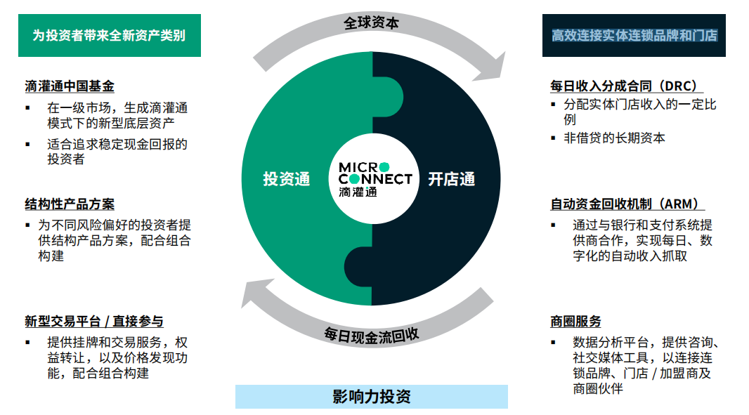 不同于传统的融资模式,滴灌通打造了第三类创新企业融资手段,不要股权、不是债权、不干涉门店经营,依托建立在数字化基础上的收入分成模式,支持小微经济发展。