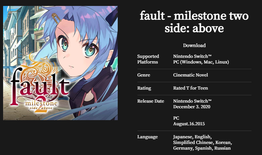 7年前,fault系列的开发团队ALICE IN DISSONANCE(下文简称AiD)想在两部正作之间穿插一部外传作品用于调剂氛围,埋下伏笔。当时他们为这部外传命名为《fault – SILENCE THE PEDANT》,并计划于2017年发售。