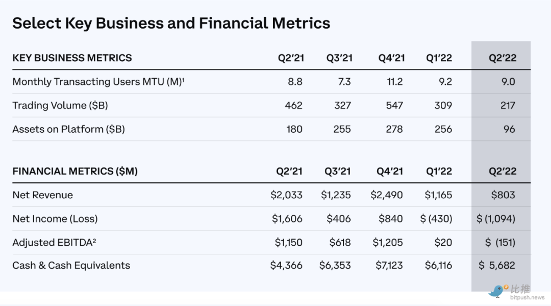 该公司在致股东的一封信中表示:“第二季度是对加密公司的耐久性测试,也是一个复杂的季度。剧烈的市场走势改变了用户行为和交易量,影响了交易收入,但也凸显了我们风险管理计划的实力。”