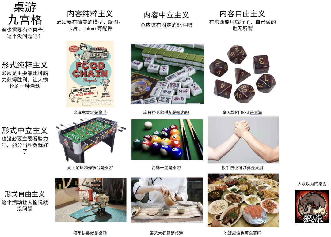 或许和许多人一样,我接触到的第一个更“桌游”的游戏也是《大富翁》。在那以后,也接触了更多玩法与种类的桌游。世界最大的桌游网站BGG目前对桌游分为8类:儿童游戏,家庭游戏,策略游戏,可定制游戏,主题游戏,聚会游戏,抽象游戏和战棋。而就习惯而言,桌游可以被笼统地分为重策略、强精算的“德式”桌游,重剧情、强体验的“美式”桌游,以及可以囊括所有单局时长在30min以下的“毛线”桌游。大部分的聚会桌游都可被称为毛线。