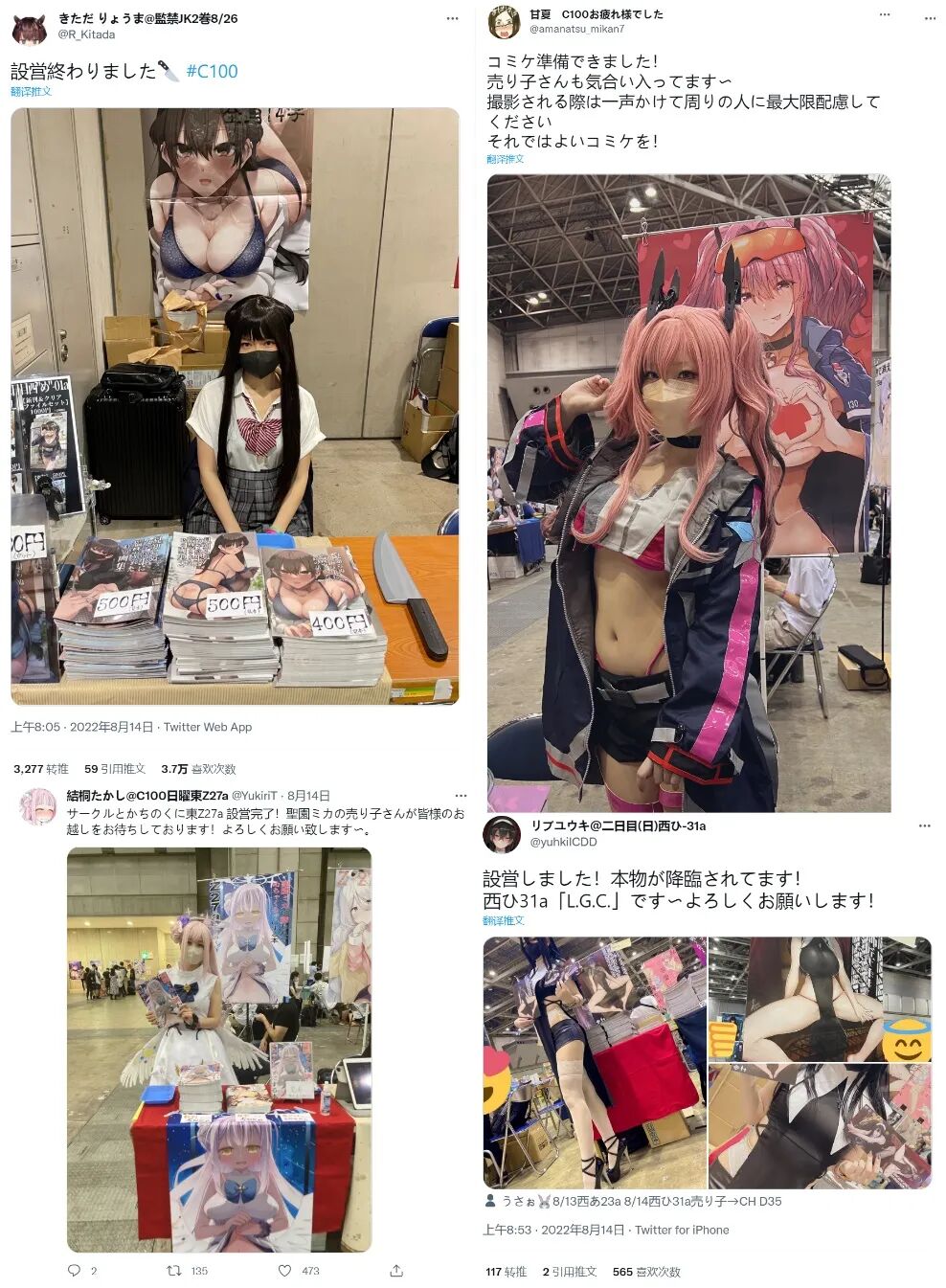 就像她所绘制的那样,在CM上由Coser来负责看摊卖本并不算什么新鲜事,就在这届C100上也有不少令人眼前一亮的看板娘,高度还原了她们所推销的本子中的角色。