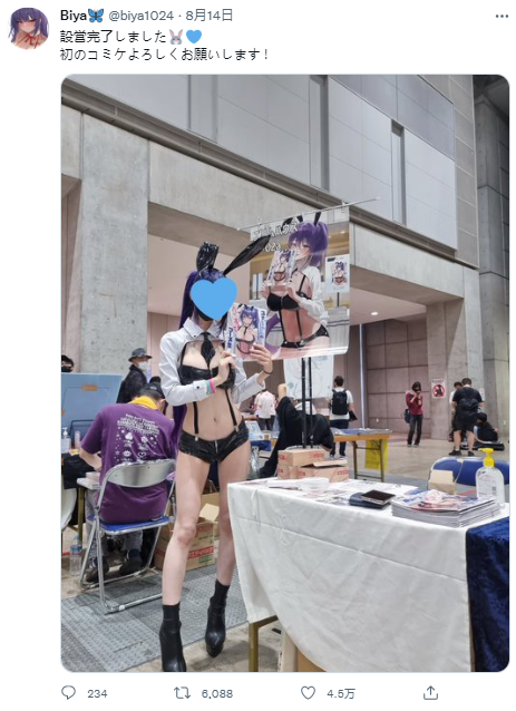 Biya带来C100销售的1000本画册很快在展会上销售一空,当其他摊主还在努力卖货的时候,她已经和朋友们去畅游东京,慕名来一睹芳容的粉丝则只赶上了空空如也的摊位。