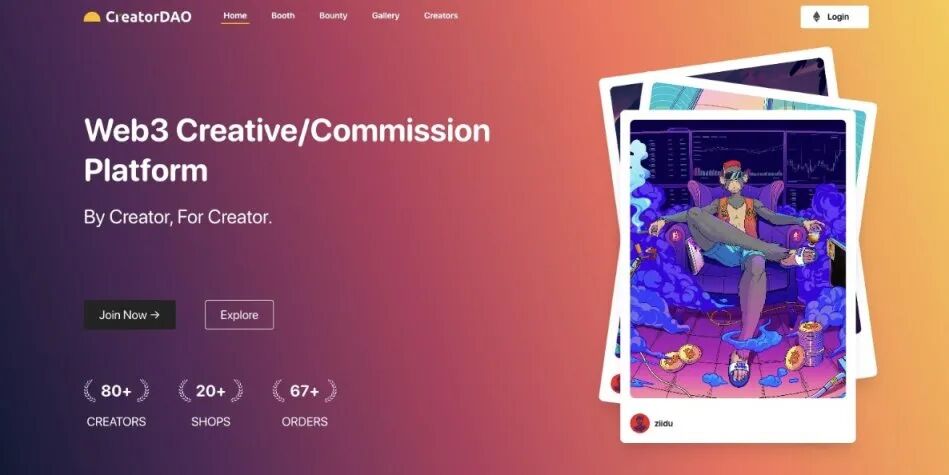 CreatorDAO正在构建一个平台,这个平台将允许委托任何东西(例如图像、音频、3D、Lore、动画等)。目前平台已经拥有超过 80 位创作者,60 个平台订单。