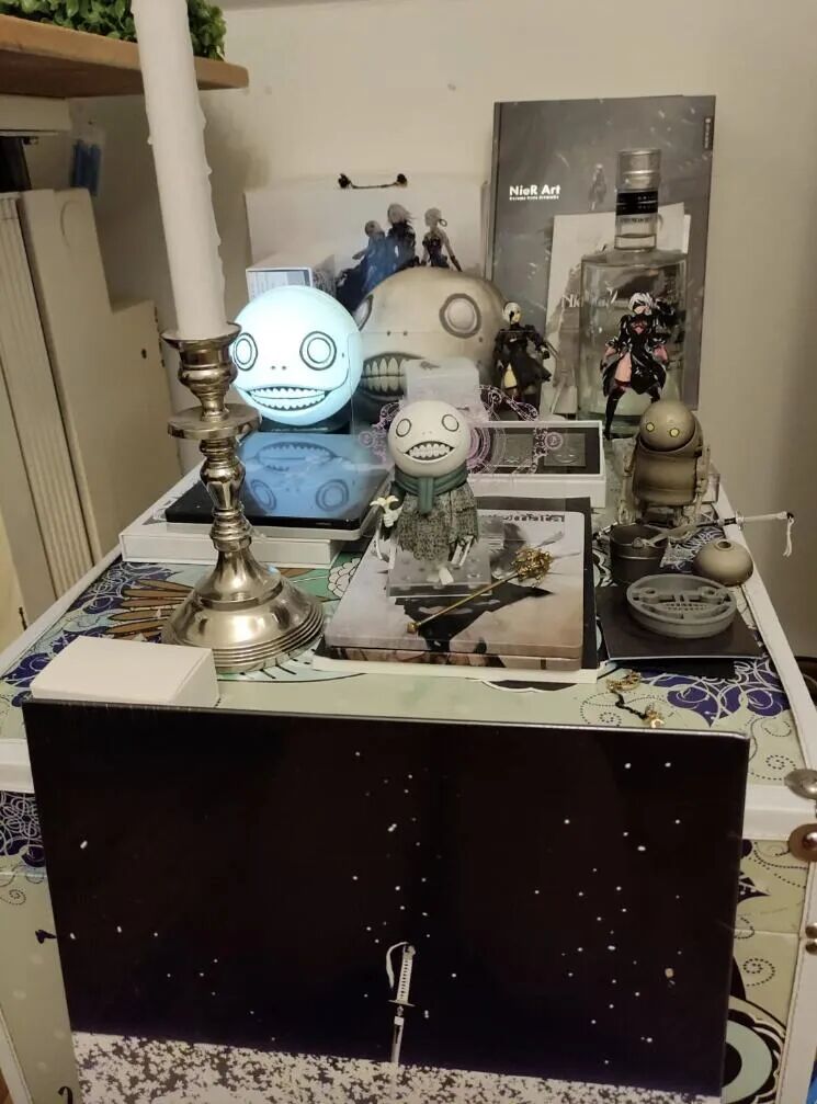 这款游戏不仅在音乐和美术上非常契合她的审美,在情感内核上的表达,也让她非常认同,并深深地鼓舞了她。自此,Ennja才一发不可收拾地迷恋上了这款游戏,开始在家里搭建前文提到过的“《尼尔》神龛”。