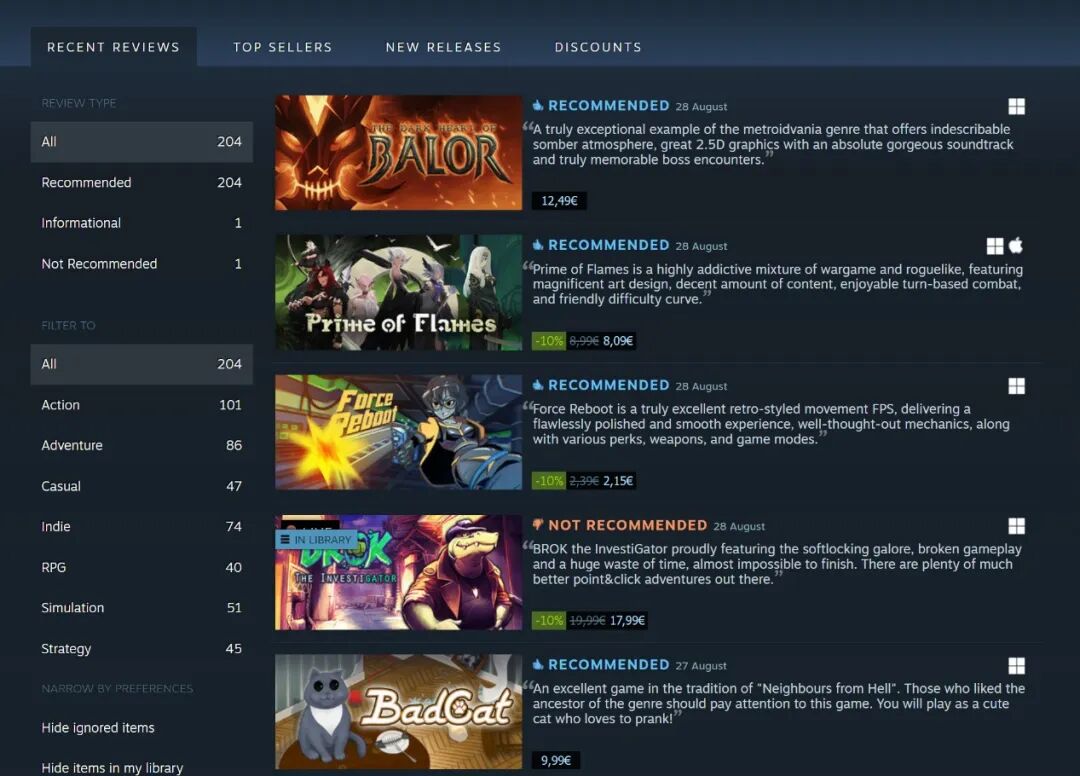 几番测试之后,《鳄鱼侦探布罗格》开发者发现在邮件中回复激活码问题的玩家少之又少。同时,自己的游戏在Steam鉴赏家中获得了大量差评,评语大多是一些“游戏在各个方面都欠缺打磨”的模糊说法,然而此前这些账号都已经给游戏打上过“推荐”的评价了。