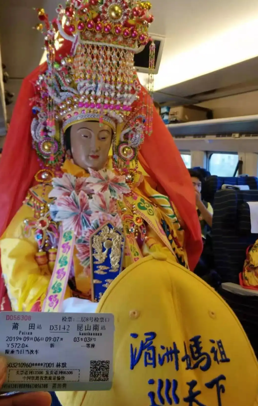 但除此之外,人们同样讶于妈祖在出行时还“走了正常流程”――她在出行时和正常乘客无异,持有机票/高铁票和身份证。