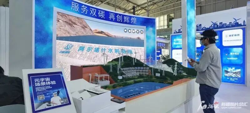 “戴上VR眼镜后,即刻进入元宇宙空间,漫步在千里之外的阿尔塔什水利枢纽大坝,还可以和通过手机、电脑进入该场景的用户们在大