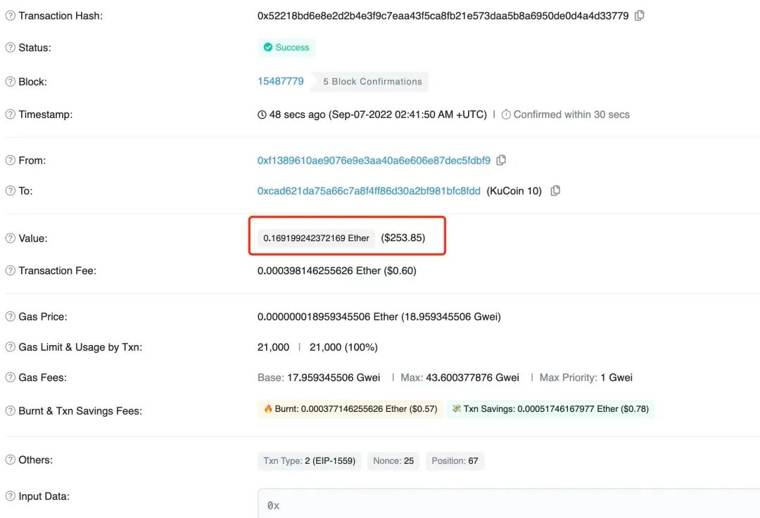 用户可以快速的获取账户的余额信息;对智能合约代码进行安全审计,实时查询链上交易费用等。一笔以太坊交易主要包含以下信息:交易hash,交易状态,交易区块号,交易时间戳,交易提交账户,交易接收账户,交易发送金额(案例中为0.1Eth),为完成交易所支付的交易费用及交易的单位燃料费用成本等。在使用区块链浏览器查询交易数据及交易详情时,应优先选择由区块链官方开发或推荐的区块链浏览器,通过检查目标合约的交易安全与否规避潜在的钓鱼或基于合约的授权攻击。