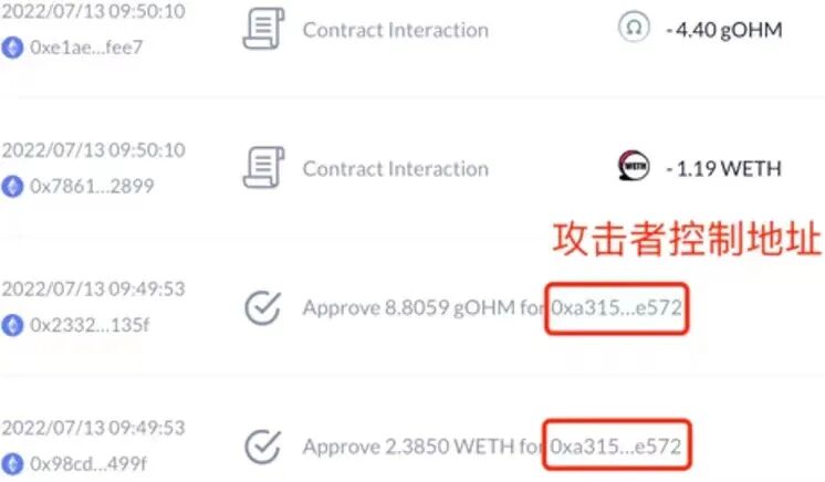 2)检测已连接钱包内持有的NFT资产,一旦该NFT在最近7天内的最低交易价格大于0.1ETH,即诱导用户授权攻击者账户具备转账对应NFT的权限,在授权后将NFT转移至攻击者账户并变现。