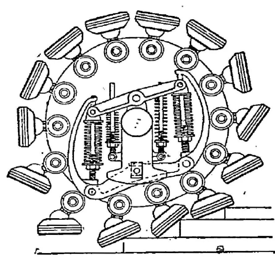 无限轨垫出现在十九世纪末、二十世纪初的英国,是伦敦发明家布拉马·约瑟夫·迪普洛克的杰作。它是一种装有活动关节减震底座的小型衬垫,多个排列安装在轮式蒸汽拖拉机的硬式车轮上,就等于为车轮安上了一圈“脚掌”,使车辆能在崎岖不平的复杂地形平稳行驶,还能爬坡和登上阶梯。
