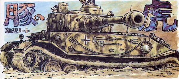 这种坦克深受宫崎骏喜爱,他曾以其为主角画过一部题为《小猪之虎》的短篇漫画,也收录在《宫崎骏的杂想笔记》中。AKIO之所以几乎原封不动参考它设计铁石坦克,或许也正是为了表达对宫崎骏的敬仰之情吧。